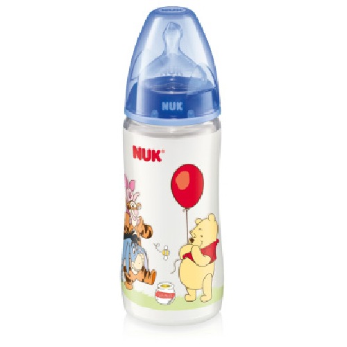 El biberón Winnie de Pooh First Choice combina los beneficios anatómicos de la forma de la tetina NUK con la sensación de estar en el seno materno. Permite alternar la lactancia materna y el biberón, reduciendo el riesgo de confusión o rechazo del pecho.