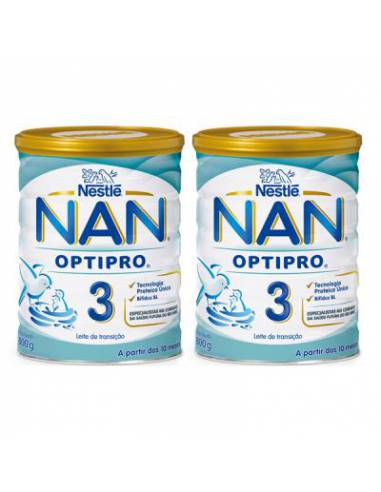 Nestlé Nan Optipro 3 es una leche de crecimiento diseñada para complementar la dieta equilibrada y variada del bebé. Está formulada específicamente para niños a partir de 12 meses de edad. Su fórmula contiene ALA (ácido alfa linolénico), que favorece el desarrollo cerebral del niño, así como sus tejidos nerviosos. Además, contribuye a proporcionar los nutrientes necesarios para el desarrollo adecuado del bebé gracias a su alto contenido en vitaminas y minerales. Incorpora Lactobacillus Reuteri, que favorece el tránsito intestinal reduciendo la posibilidad de cólicos y digestiones pesadas. No incorpora Aceite de Palma. Se aconseja administrar 500 ml diarios hasta los 3 años. Ha sido testada bajo control pediátrico. Esta leche Nan Optipro de Nestlé es un preparado lácteo que ayuda a satisfacer las necesidades alimenticias del bebé gracias a su aporte de vitaminas y minerales. Está indicada para niños a partir de 1 año.